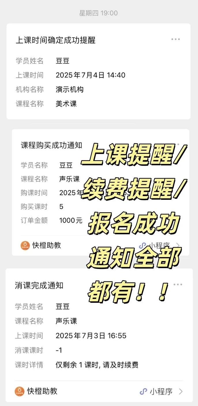 家长一下单,通知立刻 “叮咚” 弹出!课程关键信息一目了然,专业高效的服务反馈,直接把家长好感值拉满💯!